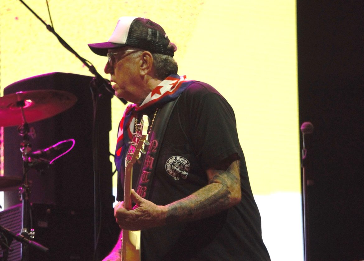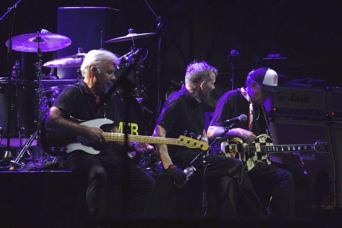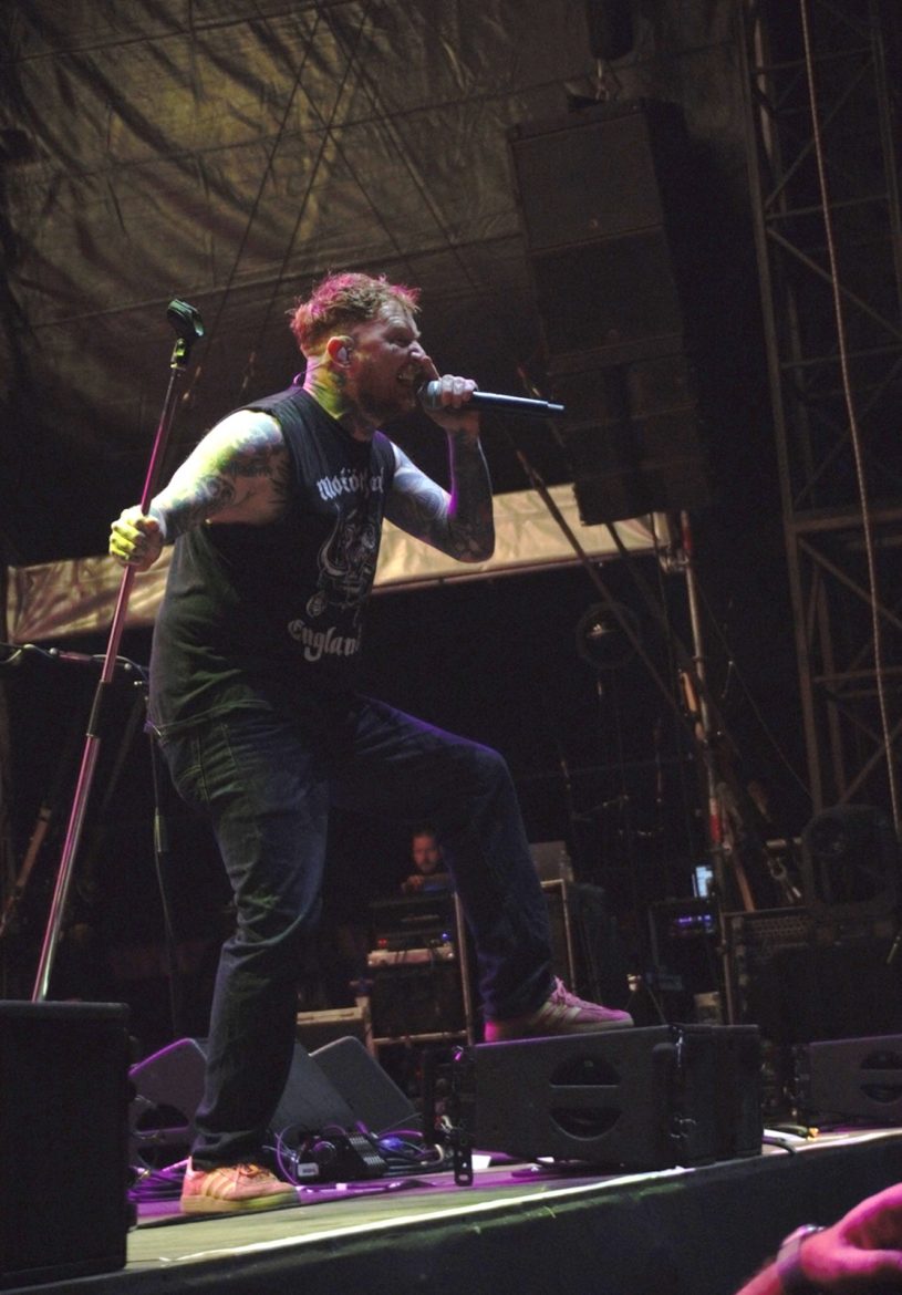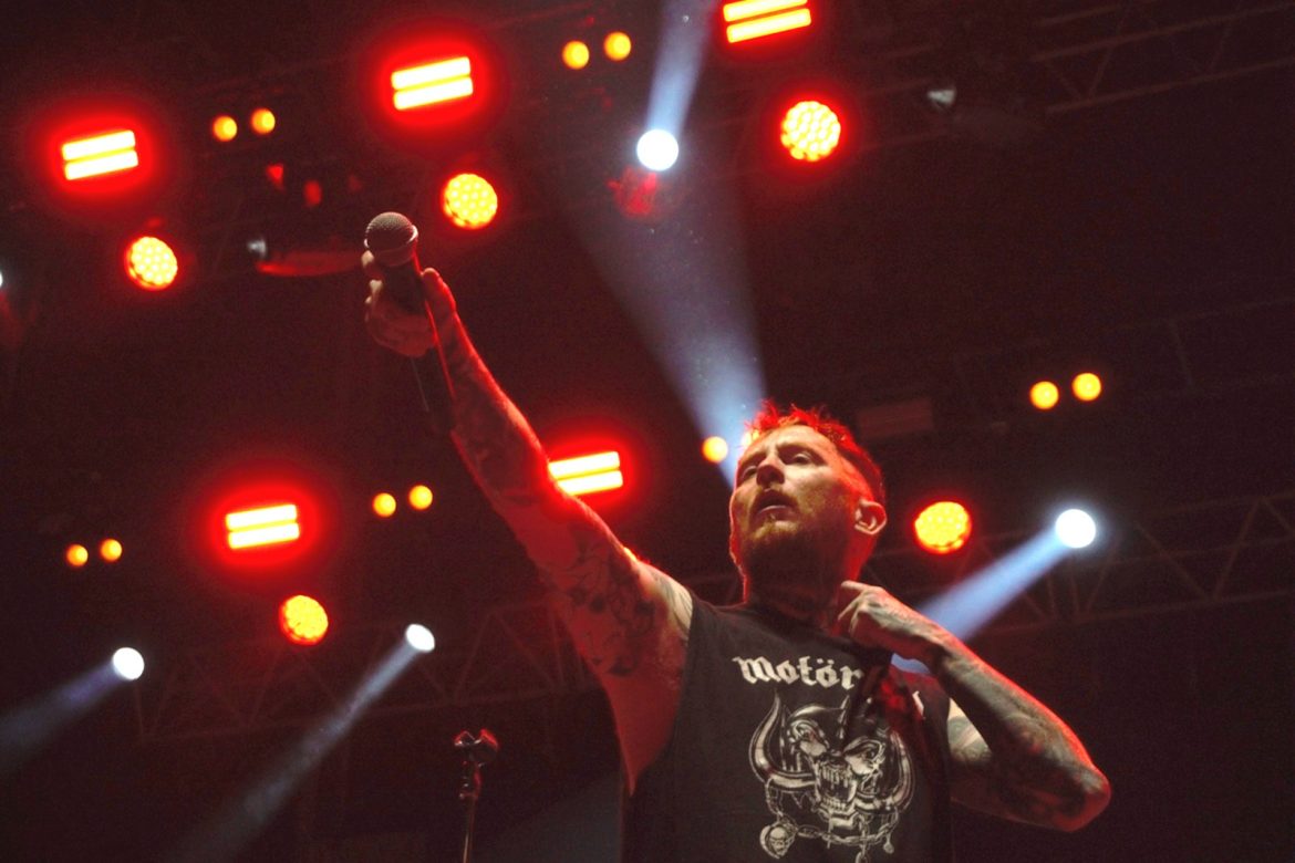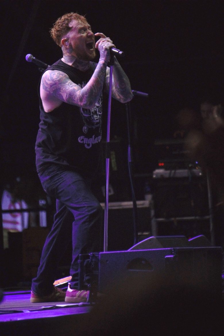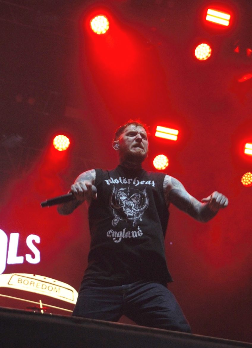 Les cheveux blancs et les crânes déplumés ont remplacé majoritairement les crêtes d’antan même si l’on pouvait admirer quelques coiffures hautes en couleurs, rappelons que le line up originel du groupe composé de Paul Cook derrière les fûts, Glen Matlock à base ainsi que Steve Jones à la 6 cordes flirtent avec les 70 printemps. Le public s’est s’échauffé avec le spectaculaire et sympathique trio anglais Toy Dolls. Il est 22 heures lorsque l’on voit apparaître sur la scène du Jardin Sonore le groupe et Carter tout en tatouages arborant un t-shirt à l’effigie de Motörhead, le public et votre serviteur en transe sous les premiers riffs de « Holidays In The Sun » lancés par Steve Jones. La tension monte progressivement, tous les titres de « Never Mind The Bollocks » sont joués pour notre plus grand plaisir, les excités des premiers rangs enchaînent slams et pogos comme aux plus grandes heures du punk rock, tout ce joyeux bordel restant festif et sans débordement particulier. Pour ma part je bois du petit lait en mitraillant les musiciens devant la scène dans le créneau des 4 premières chansons accordées aux privilégiés dont j’ai l’honneur et l’immense plaisir de faire partie. La prestation de Frank Carter réussi presque à nous faire oublier l’absence de John Lydon, le gars éructe et prend possession de la scène comme un possédé, sa fougue entraînant les 3 musiciens vétérans vers le haut. Une excellente surprise pour les plus sceptiques dont je faisais partie ! Ça n’est pas vraiment les Pistols comme le brame à qui veut bien l’entendre le chanteur historique du groupe, qui nous dit que « cette affaire ne serait qu’un cirque de clowns« . Sacré lui, punk un jour, punk toujours ! A-t-il tout à fait tord ? Mais ne boudons pas notre plaisir pour autant. Le délire monte encore d’un cran avec « God Save The Queen« , « My Way » reprise en choeur par la foule, un concert d’à peine une heure qui se terminera en apothéose avec « Anarchy In The UK » laissant un public comblé et ivre de bonheur d’avoir vu et entendu des légendes du rock.